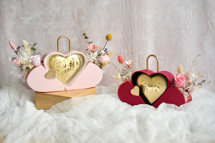 Featuring preserved and dried flowers elegantly arranged in a heart-shaped vase, accented with genuine 999 gold, these romantic floral gifts symbolize lasting devotion and timeless beauty.