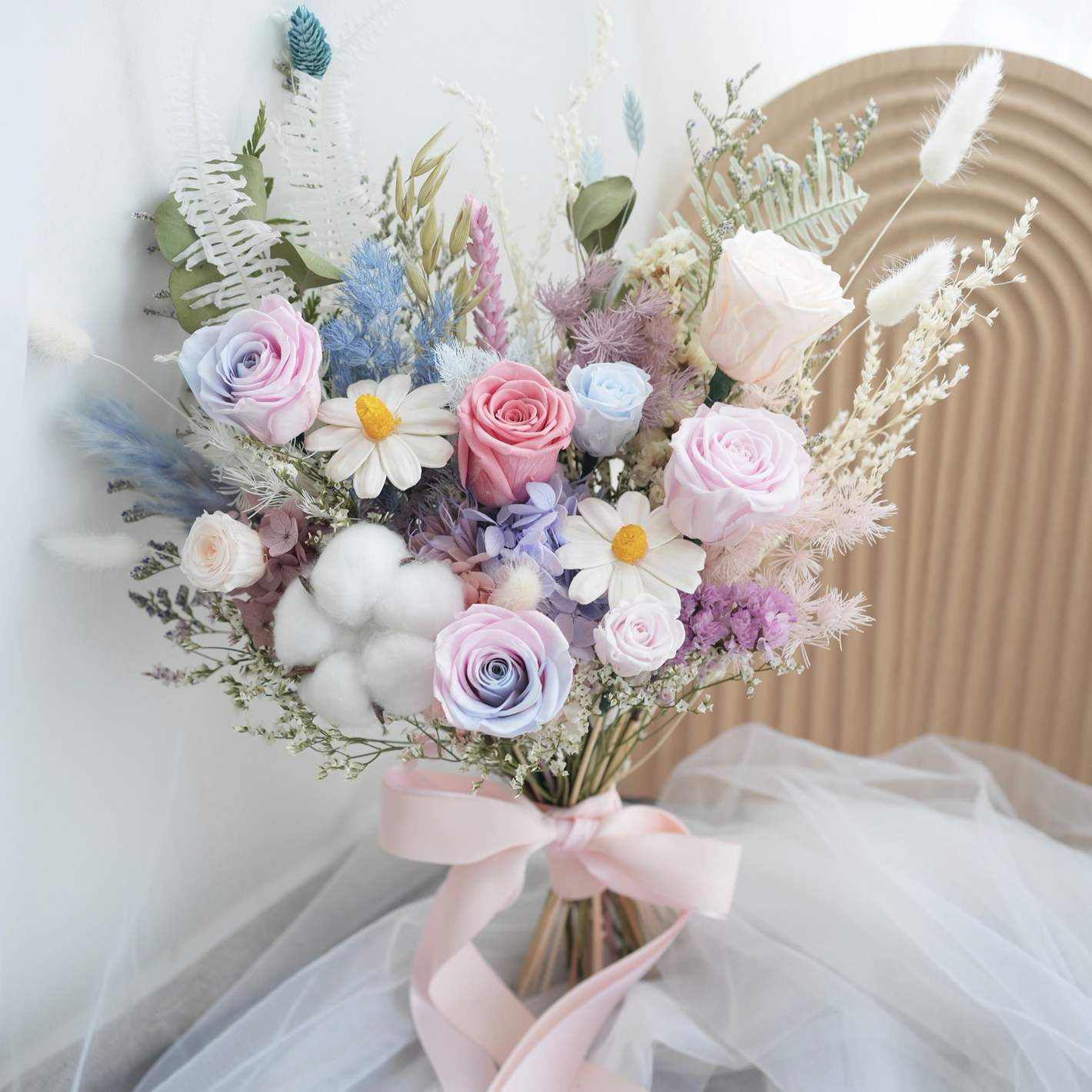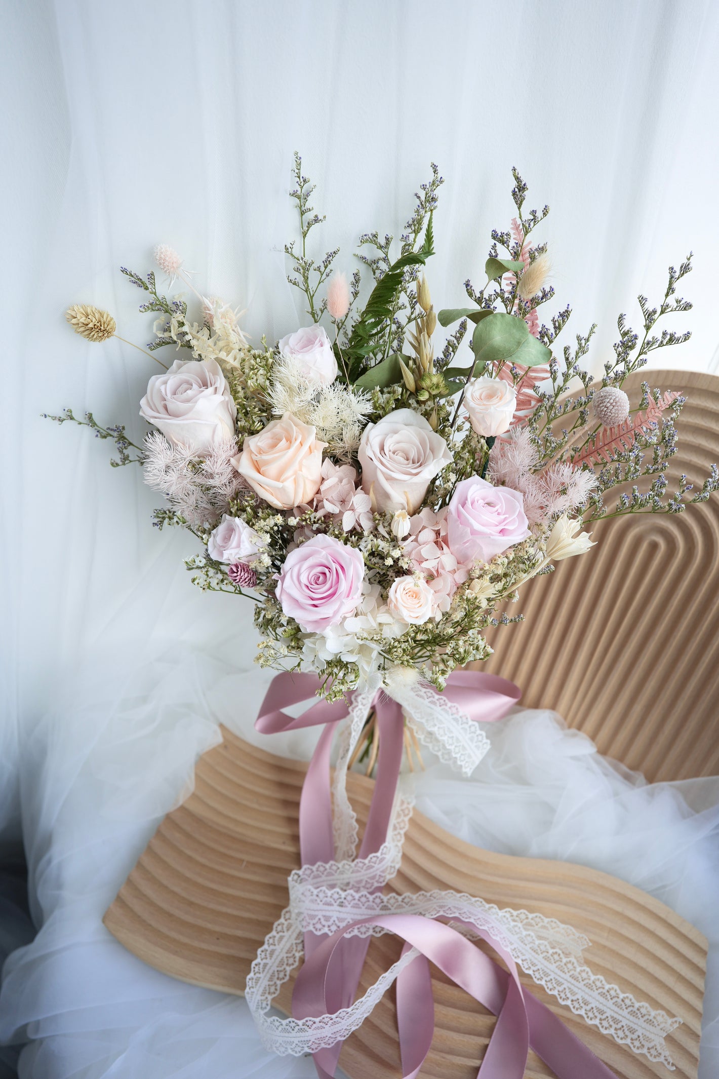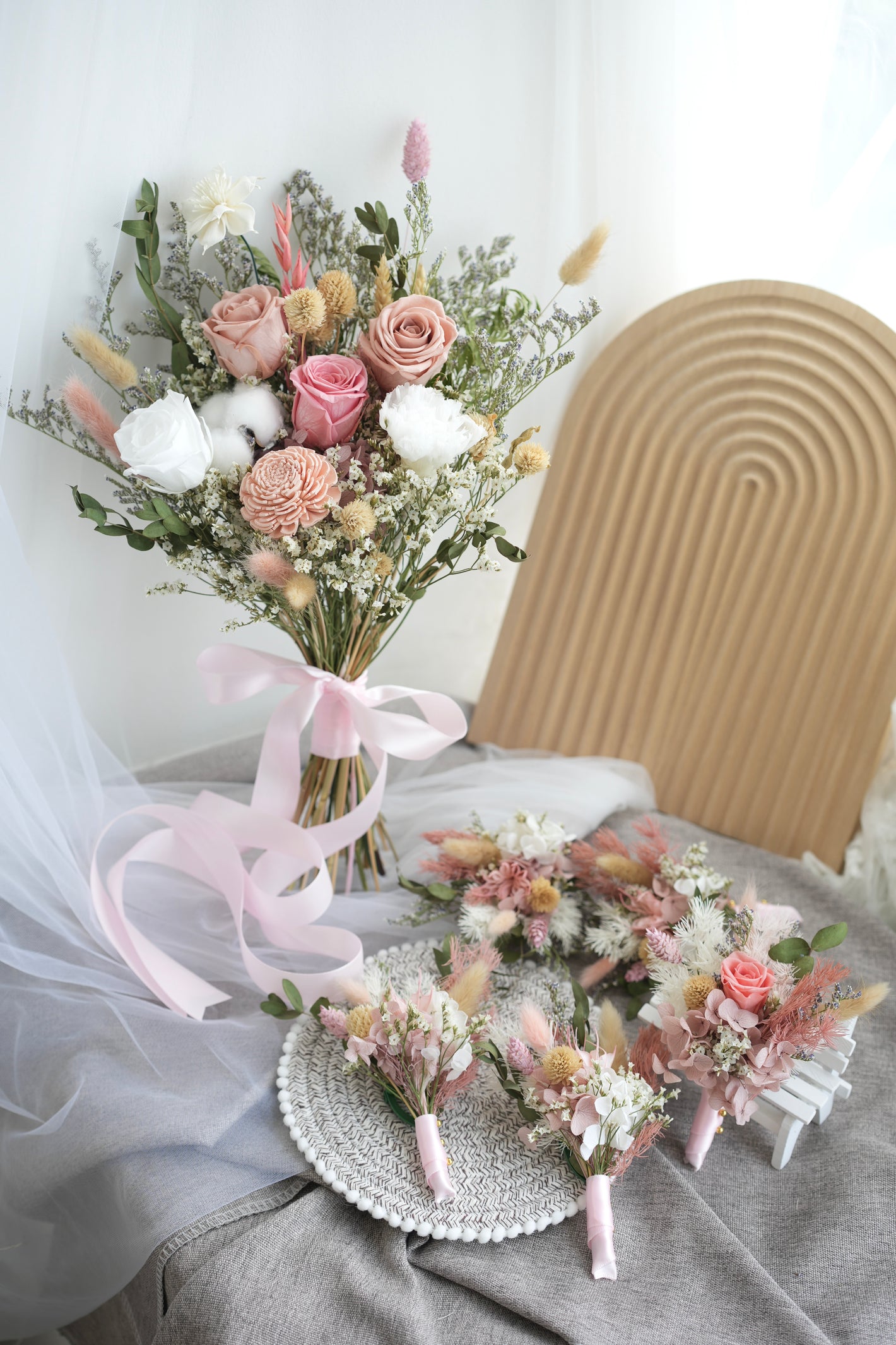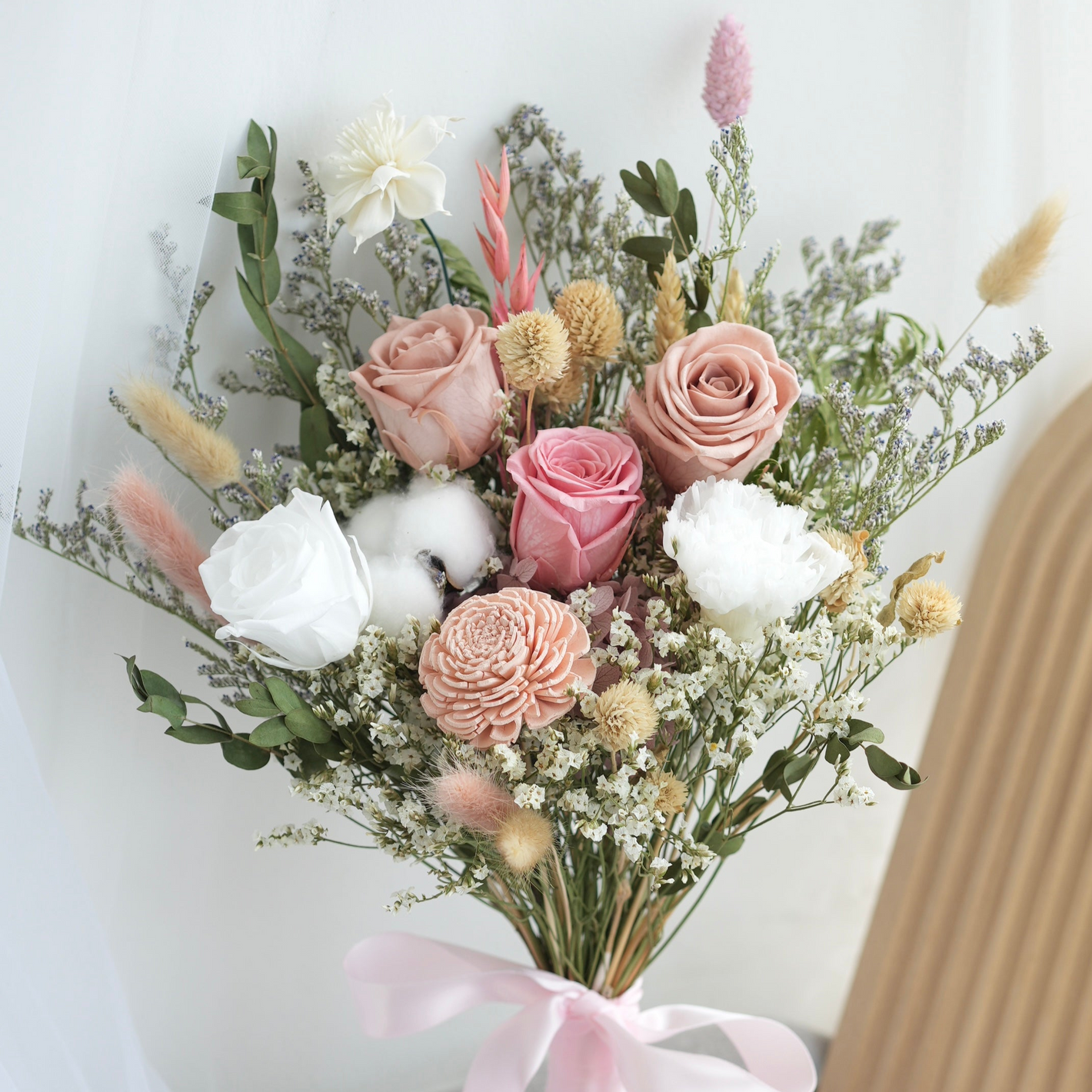 Pastel Theme Dried & Preserved Bridal Flower Bouquets