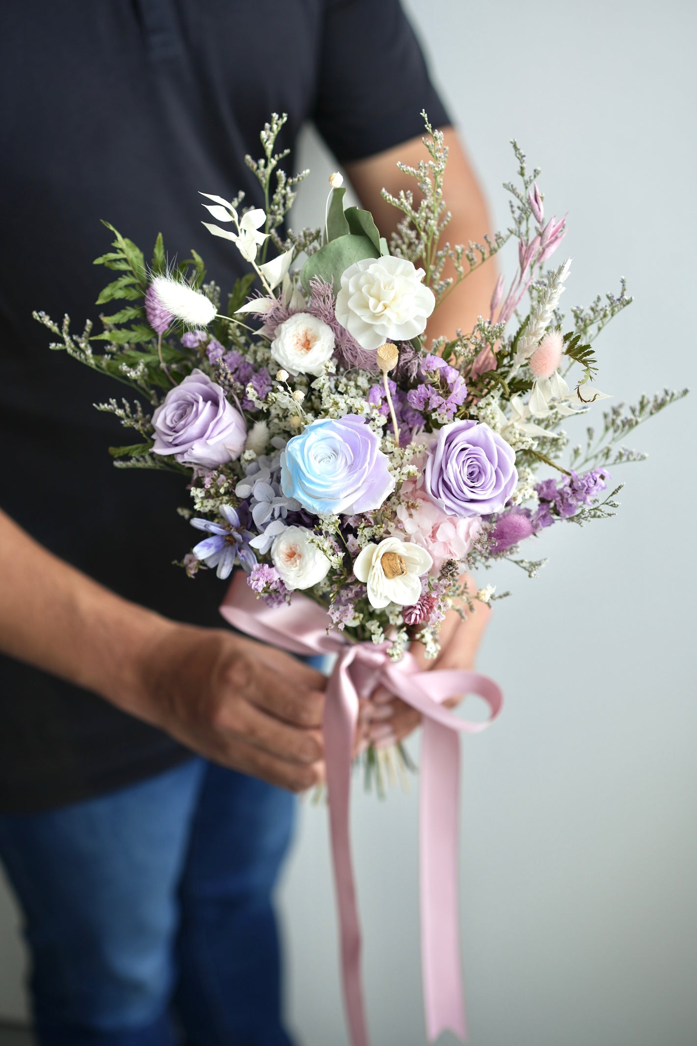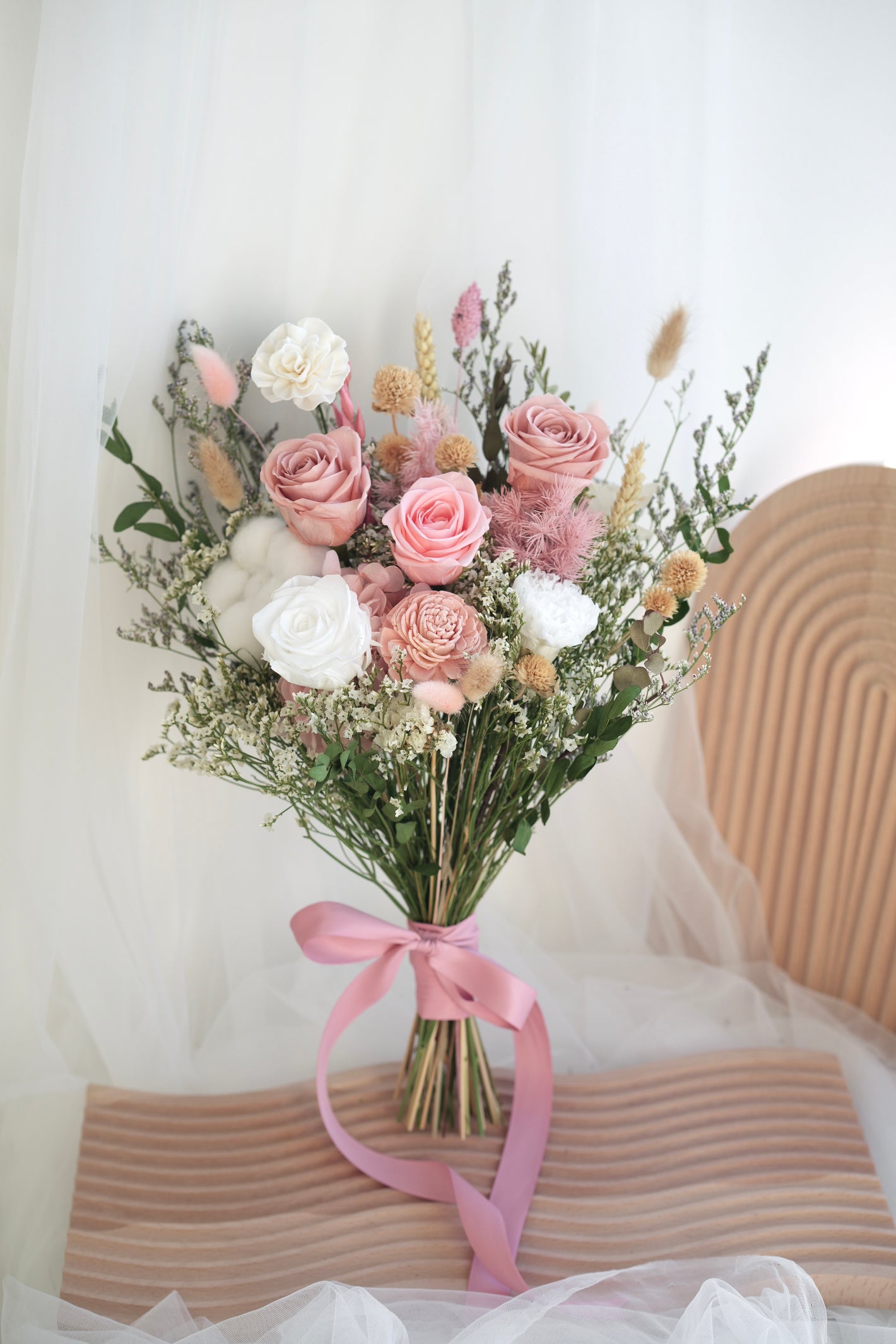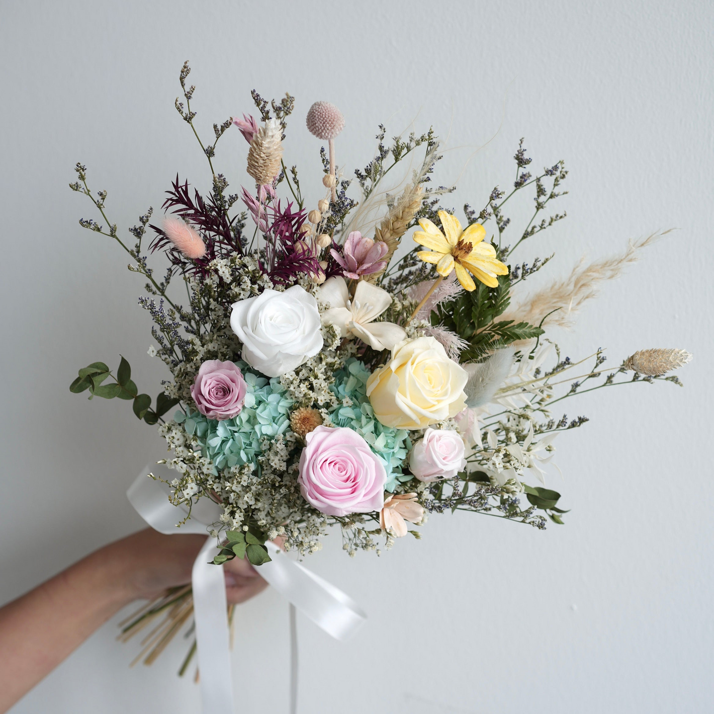 Pastel Theme Dried & Preserved Bridal Flower Bouquets