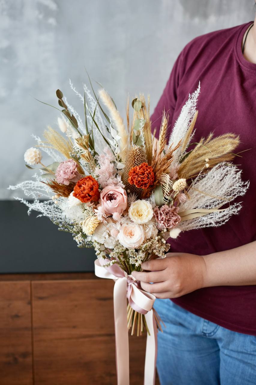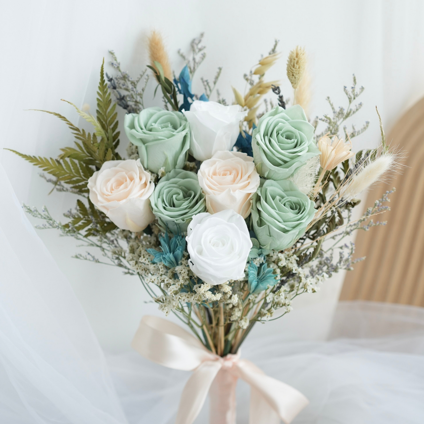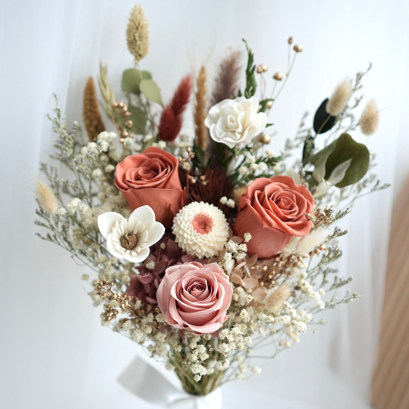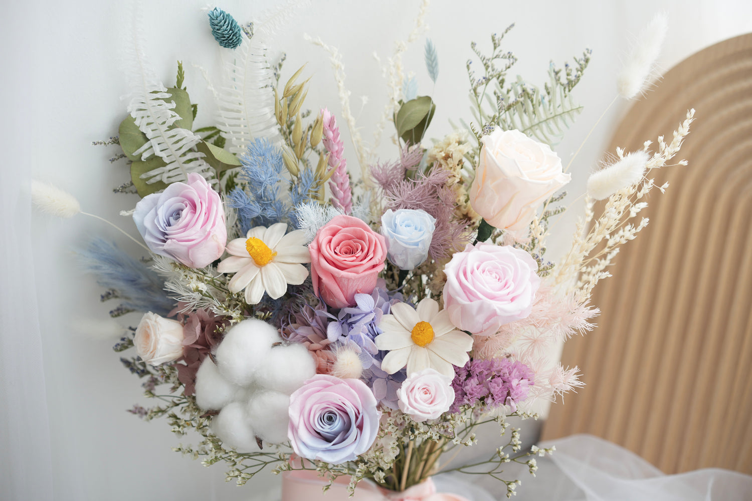 Pastel Theme Dried & Preserved Bridal Flower Bouquets
