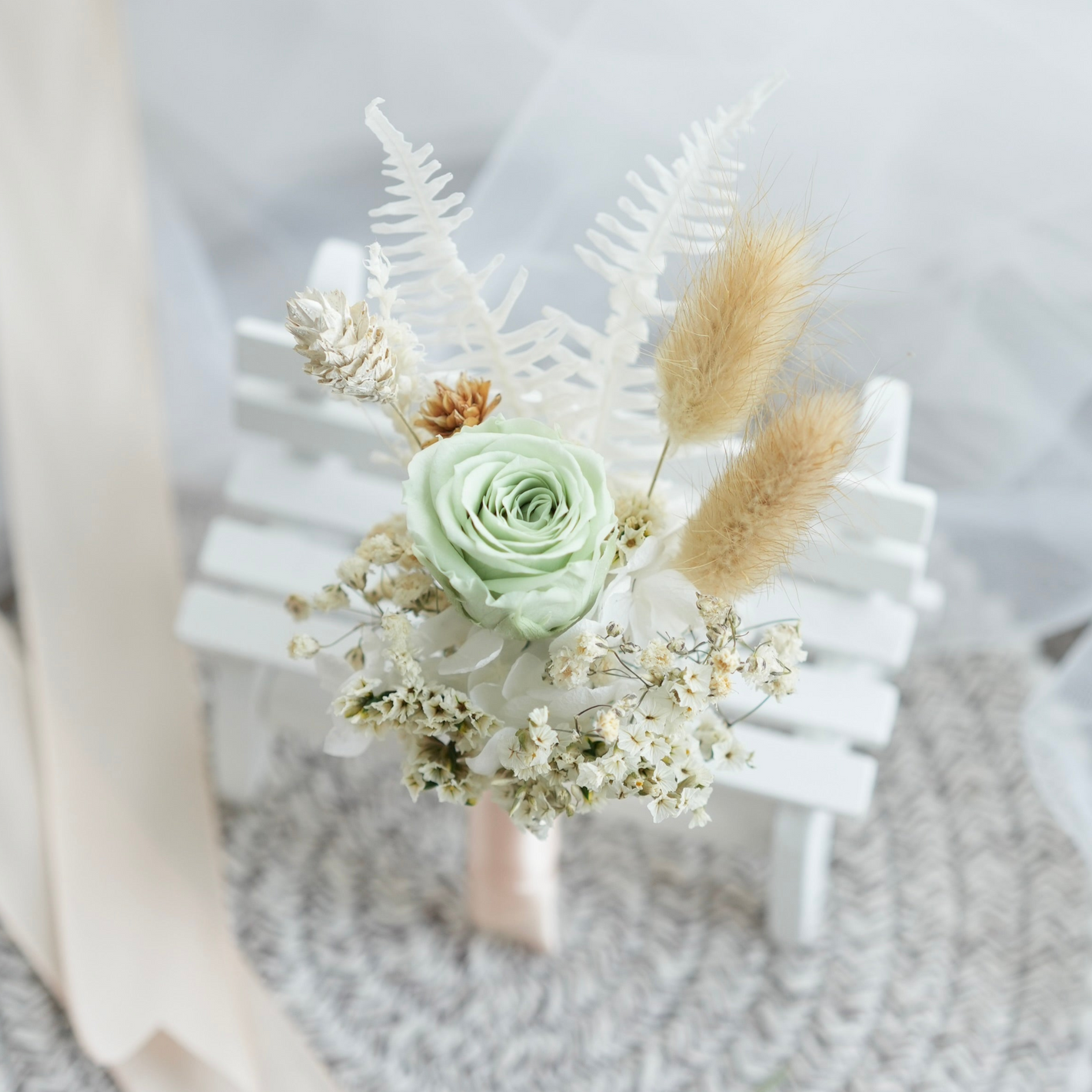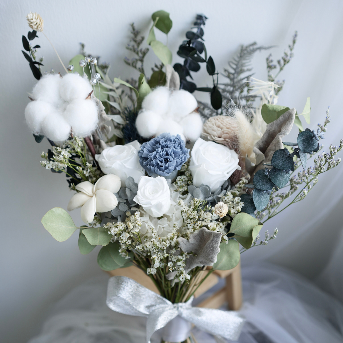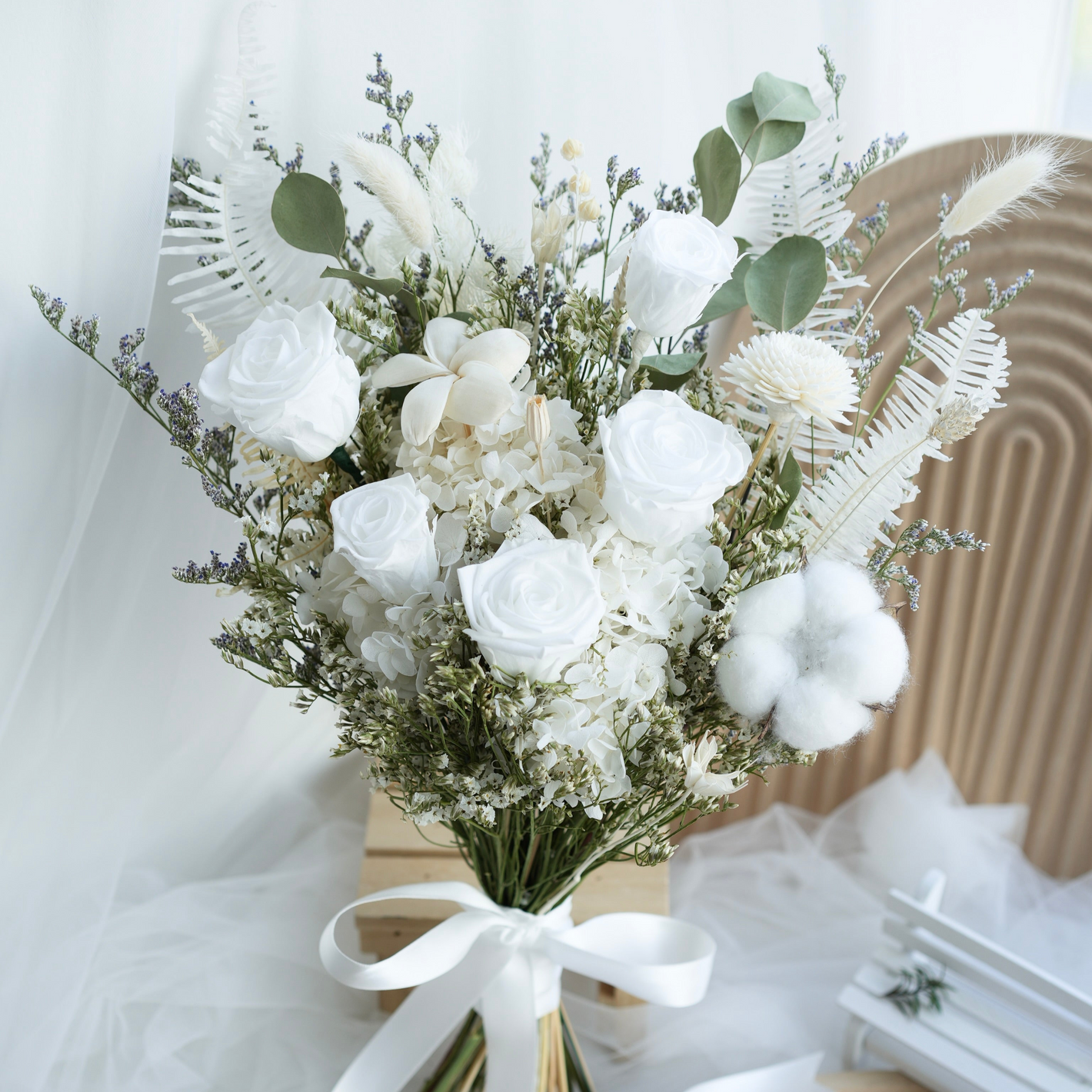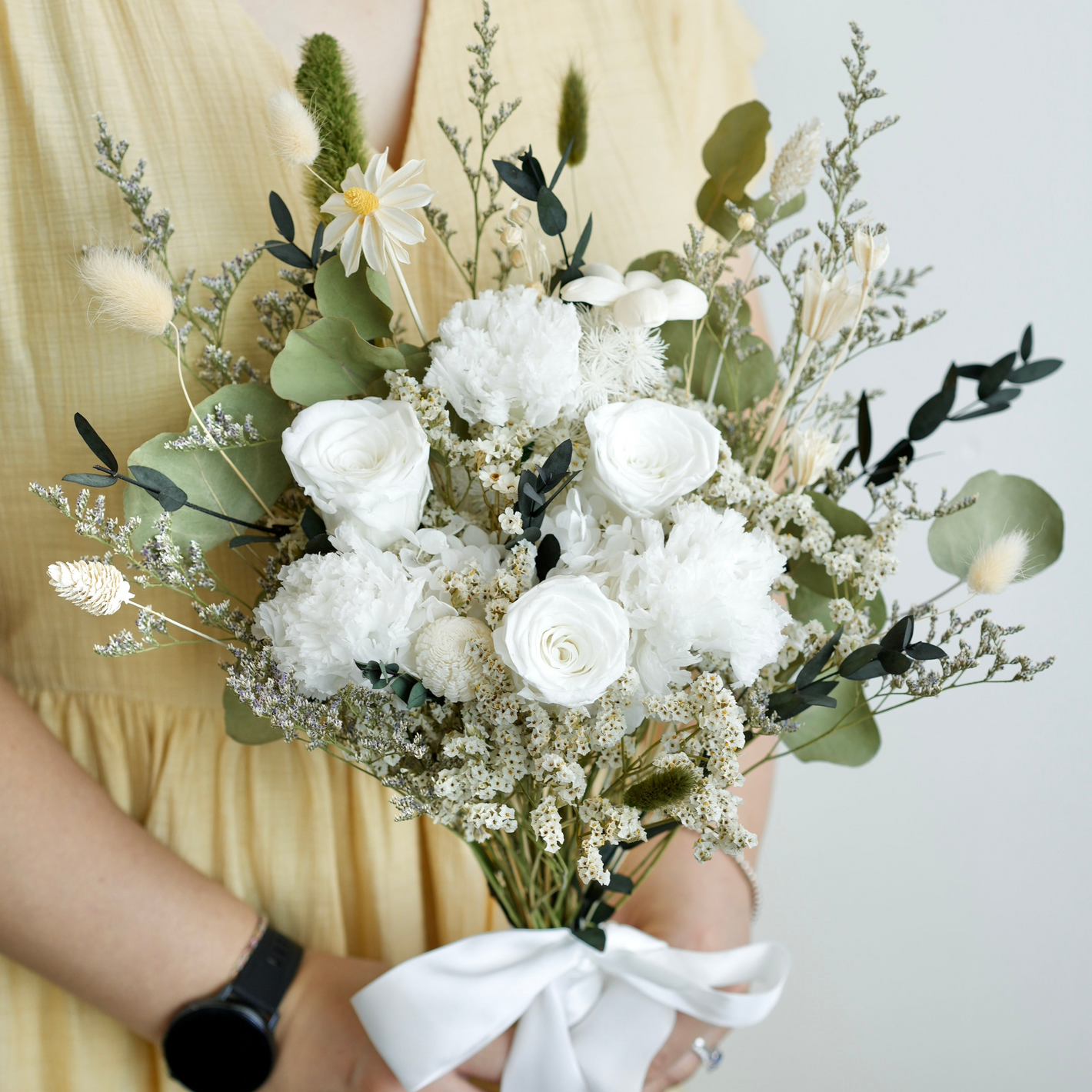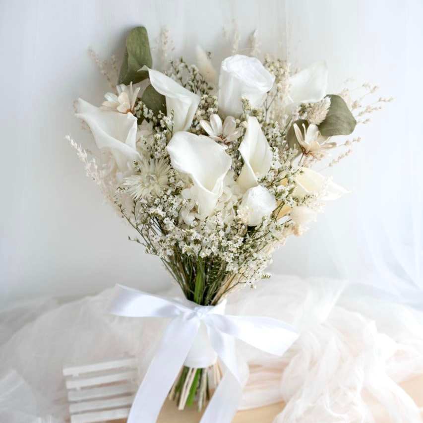 White Theme Dried & Preserved Bridal Flower Bouquet