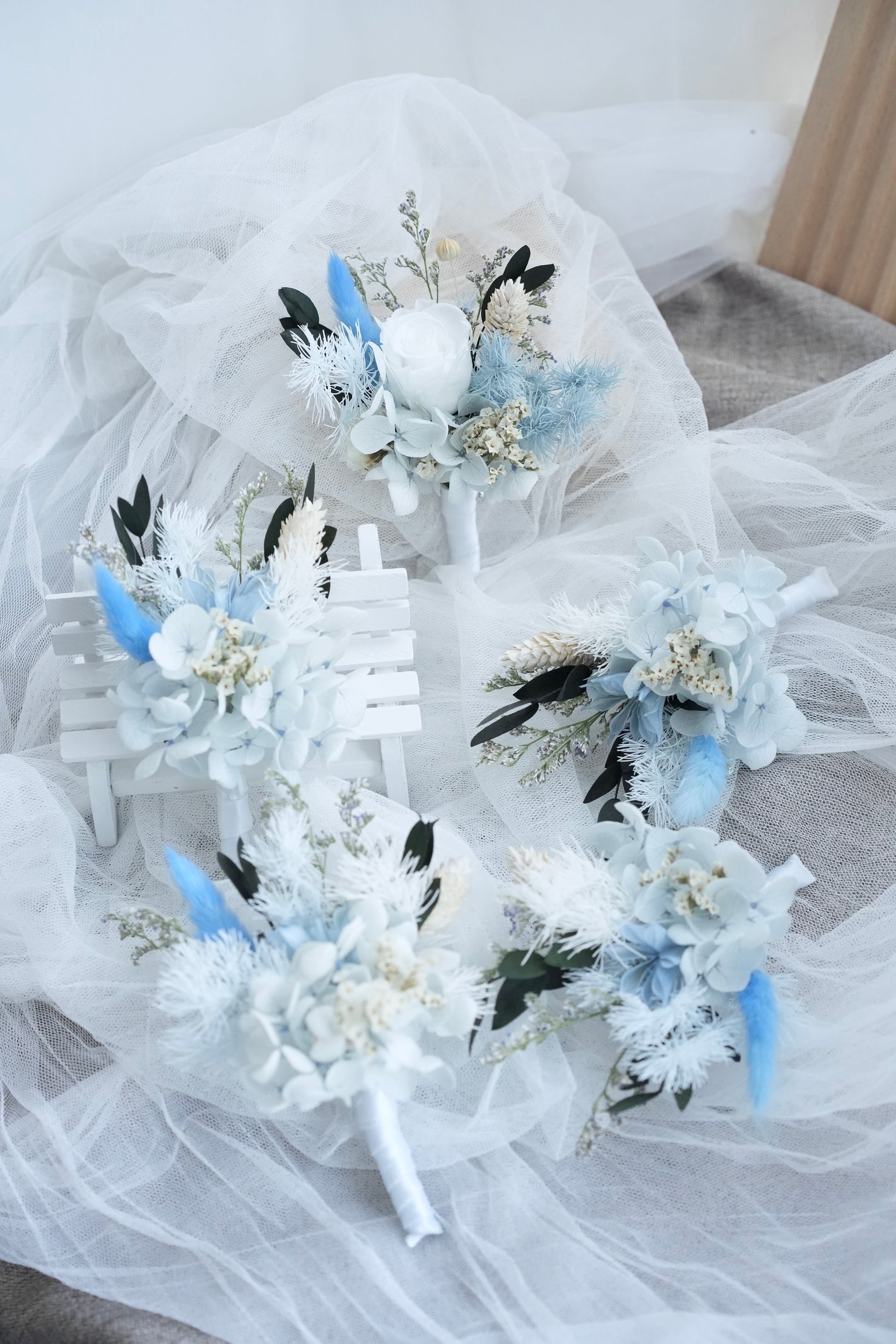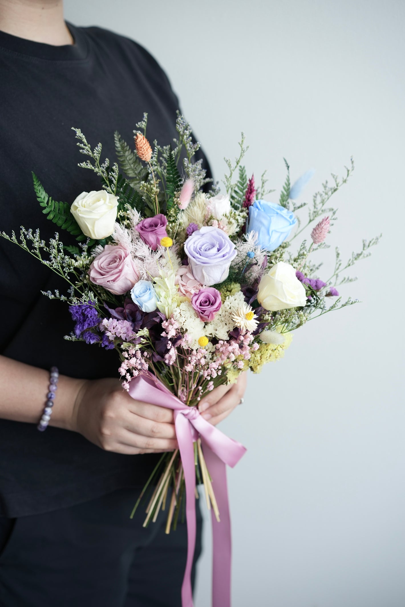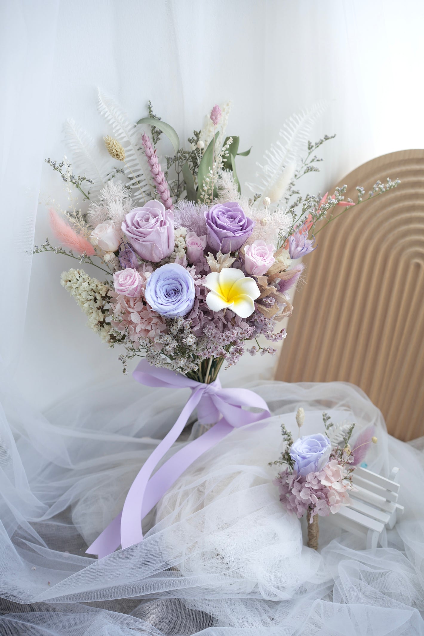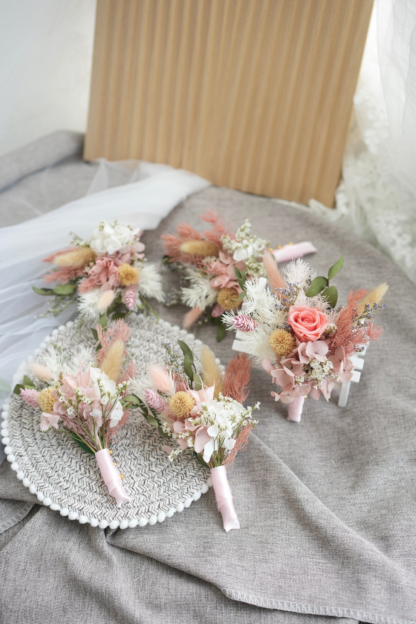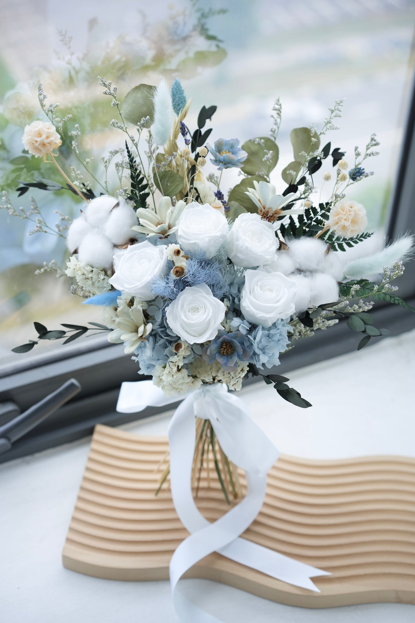 Our handheld bridal bouquets, crafted from dried and preserved flowers, designed to suit your size, style and wedding theme.