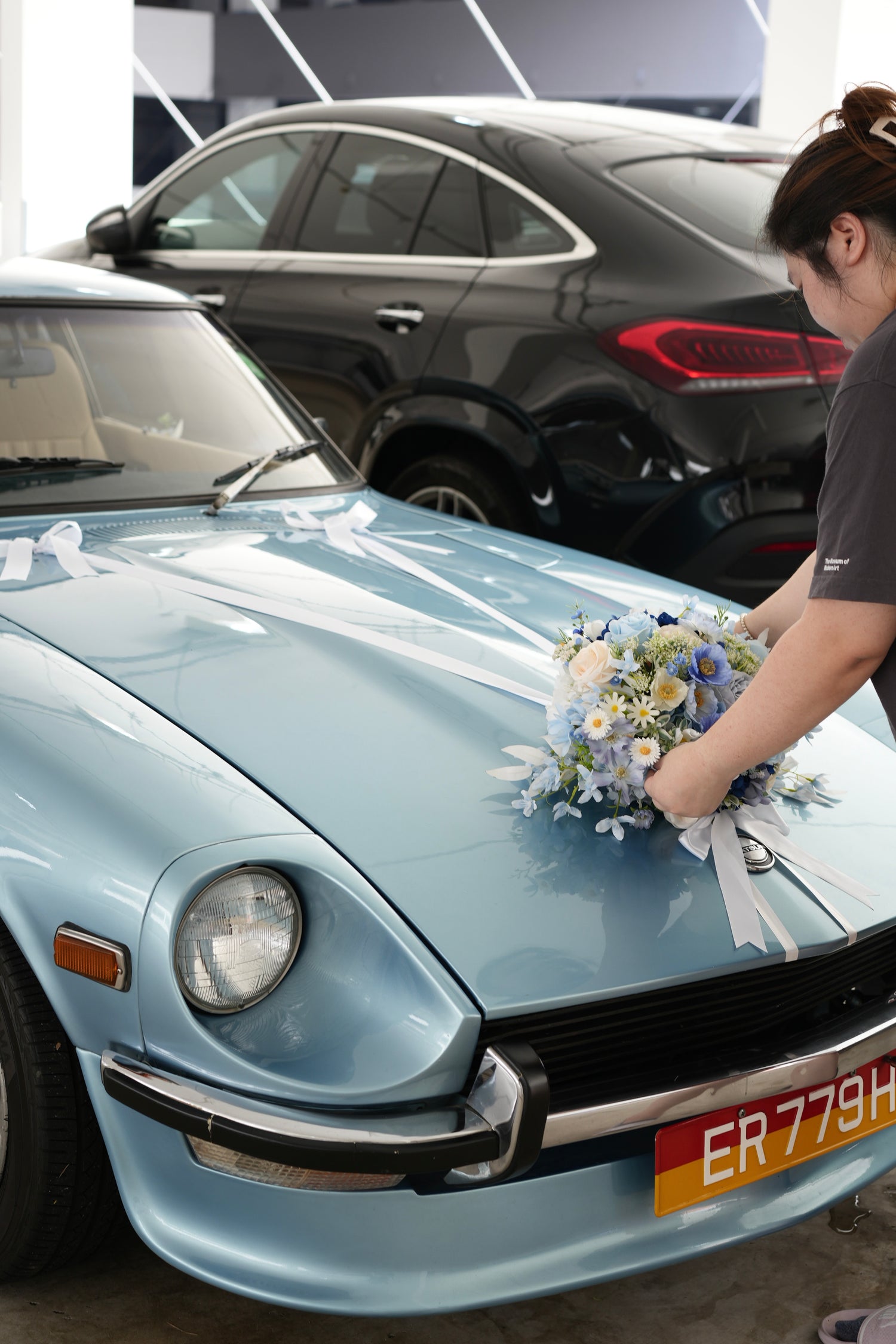 Enhance your bridal car with our exquisite decorations, featuring realistic faux flowers that last through rain or shine and, most importantly, throughout your wedding celebration! Each car decoration is custom-designed to complement your wedding theme on your special day. Our standard package includes a floral centrepiece and floral door posies.