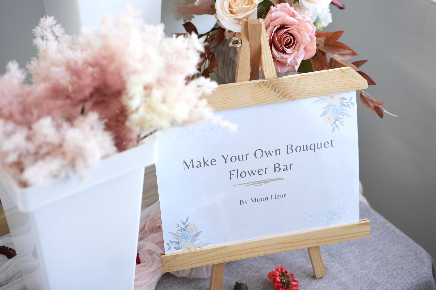 Add an interactive touch to your wedding event with our wedding flower bar services in Singapore! Allow guests to create their own dried and preserved flower arrangements to take home as a keepsake, making your wedding celebration even more memorable!