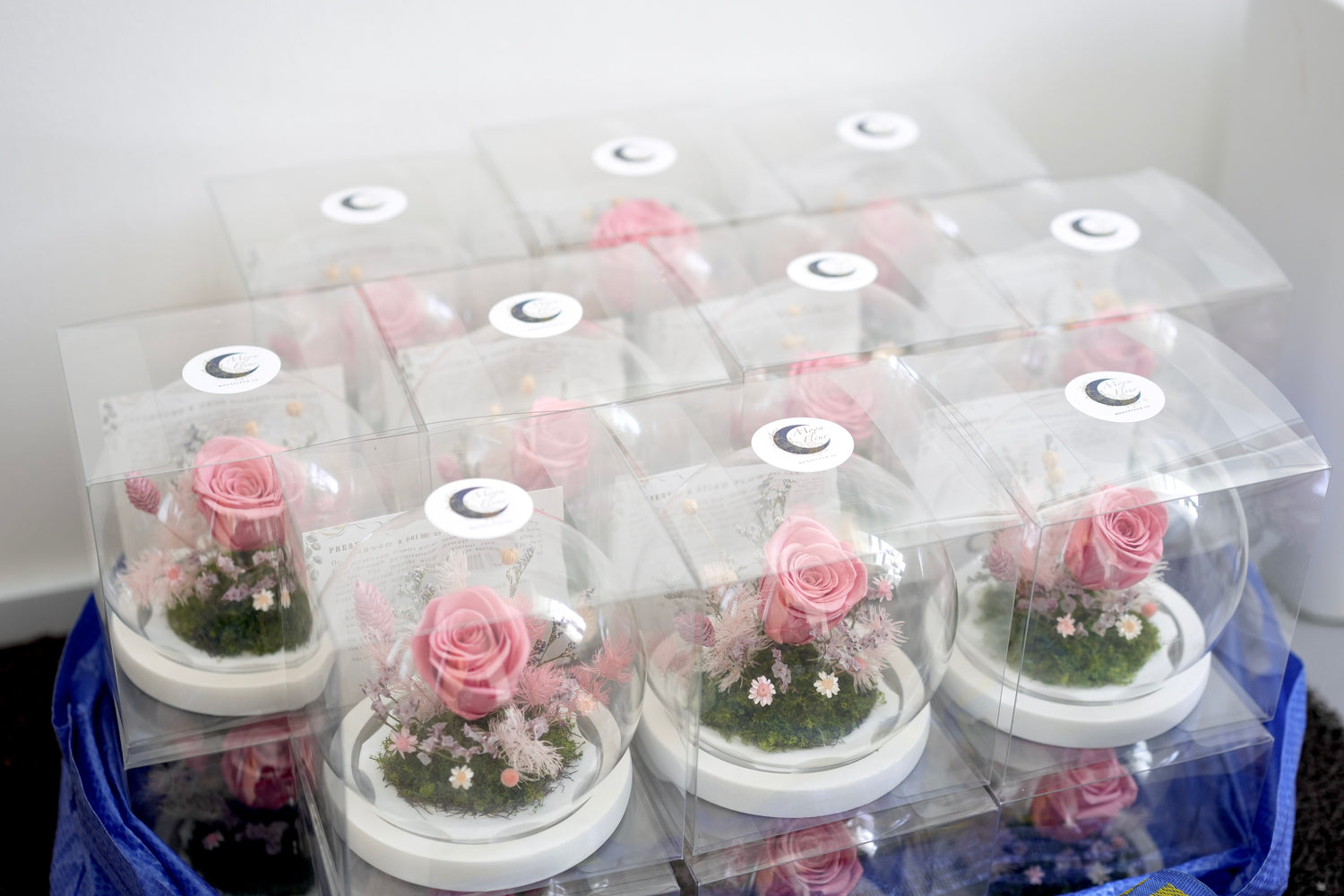 Leave a lasting impression with branded keepsakes with floral arrangements that matches with your colour theme.