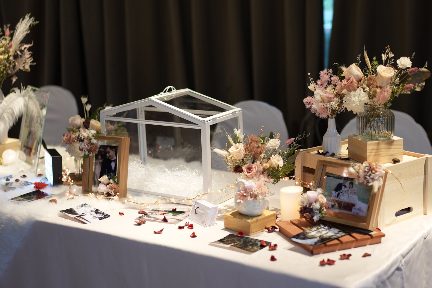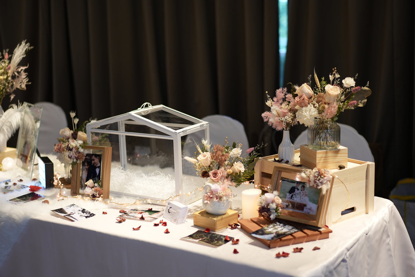 Decorative props will be provided to make your wedding photo table decoration stand out, thoughtfully designed and perfectly coordinated for your dream wedding.