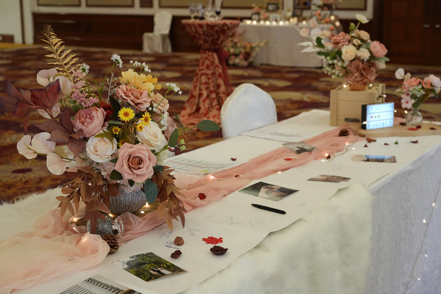 Your wedding photo table is where guests get a glimpse into your love story. It's often the first table guests notice as they enter your venue, making it an ideal place for stunning floral arrangements. At Moon Fleur, we offer beautifully crafted flower designs for your photo table, using a blend of faux, dried and preserved flowers, to create a timeless and stylish look. Our team will tailor the design to reflect your theme and personal style to make your dream wedding come true!