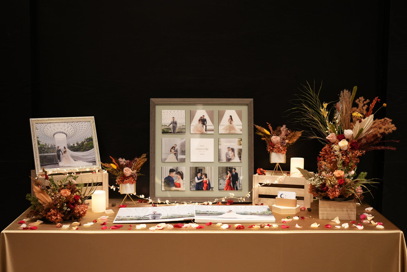 Elevate the look on your photo table that reflects memories of your love. Make your wedding photo table lush, romantic and elegant on your wedding day!