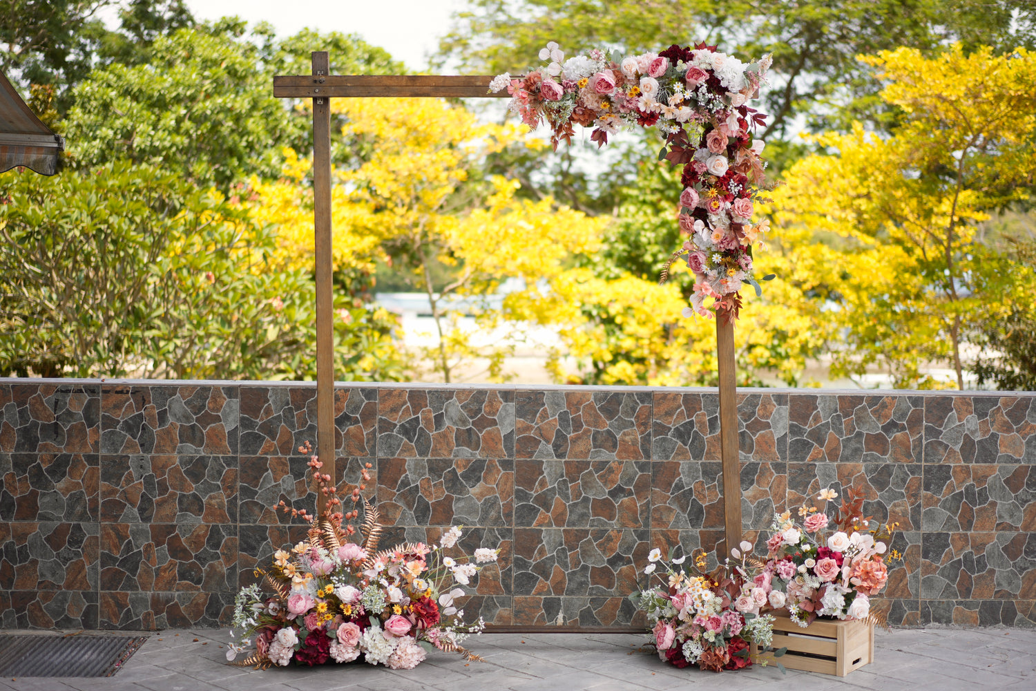 Our garden party wedding decor seamlessly blends natural elements with artistic styling. From beautiful floral arch to floral floor hedges, we create an outdoor space that feels magical and perfect for your once-in-a-lifetime event in Singapore!