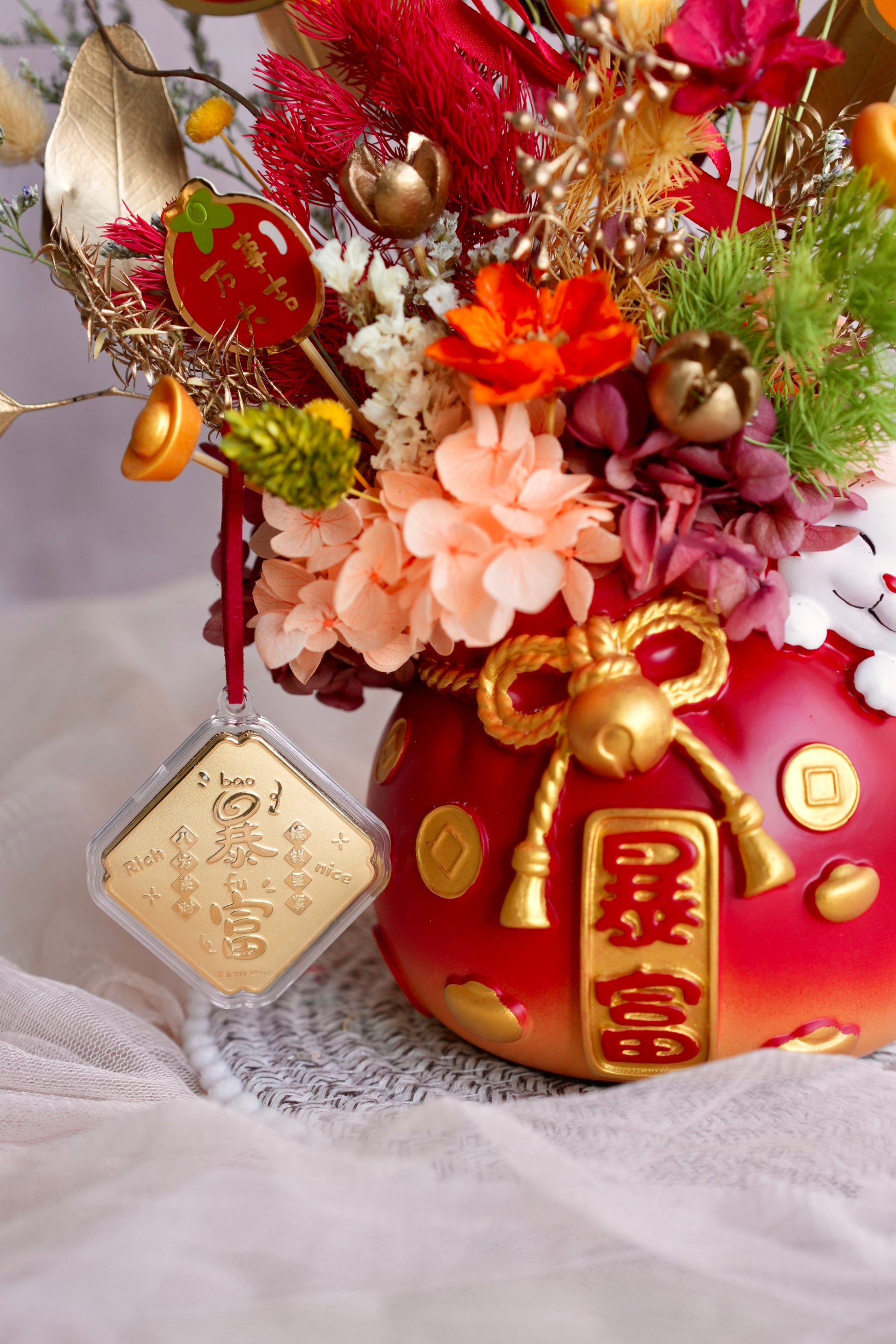 Limited pieces available! The auspicious cards / CNY accessories may be replaced with other suitable designs should the original designs run out!