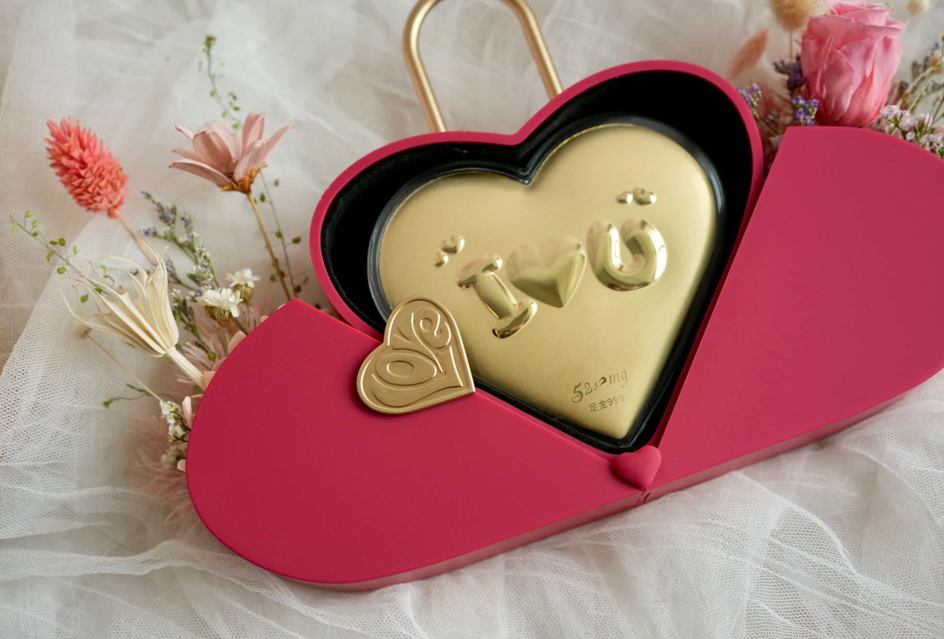Inside, a real 999 pure gold heart (Weight: 52.0 mg) adorns the vase — removable to double as a stunning jewelry display, blending practicality with sentiment.